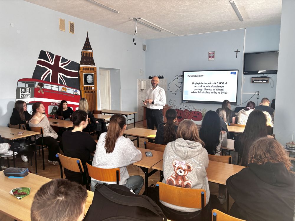 Podczas warsztatów uczniowie poznali praktyczne aspekty marketingu internetowego i funkcjonowania e-commerce. Omówiono także trendy na rynku pracy, wpływ technologii na jego zmiany oraz znaczenie kompetencji cyfrowych. Dr Szymański podzielił się z młodzieżą swoim doświadczeniem jako wykładowca studiów podyplomowych i prelegent branżowych konferencji.